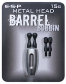 ESP Barrel Bobbin Metal Head, For long range specialists, there is also a stainless Metal Head bobbin. This interchanges with coloured the Barrel Bobbins and weighs 15g and with the stainless chain connector and add-on weight incorporated, can be increased to 21g. This extra weight improves bite indication at range on a tight line and especially in windy conditions. Kev Hewitt favours the Metal Head for most of his fishing and especially when zig fishing at range with a heavy lead where it comes into play for indicating drop backs. The interchangeable line clips simply allow the bobbin to be fished running on the line with the ball clips or gripping the line 'Elstow style' with the grip clips. The 3" ball chain is best suited to this setup, with the bobbin fished on a short drop near the bite alarm.