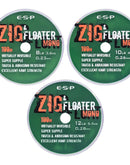 ESP Zig & Floater Mono, This clear, semi-buoyant mono is ideal as a hook link for zig rig and floater fishing applications. Featuring a fine diameter to knot strength ratio, it is tough and durable and has just the right amount of stretch to make it perfect for combining with smaller hooks. ESP Zig & Floater mono knots well and although the breaking strain is not underrated, optimum knot strength can be achieved with a carefully tied five turn grinner or palomar. Available on 100m spools and in the following sizes: 8lb (3.63kg) 0.23mm 10lb (4.54kg) 0.26mm 12lb (5.45kg) 0.28mm