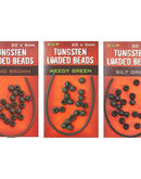 ESP Tungsten Loaded Beads, The trusty old ESP 5mm rubber beads have been a staple component for helicopter and chod set ups on leadcore since 1999 and now they have been given the heavyweight tungsten treatment with the introduction of Tungsten Loaded beads. These are four times heavier than the rubber versions (the difference is really noticeable) while still remaining soft and flexible. The three matt colours of weedy green, camo brown and silt grey complement the different ESP leadcore colours perfectly. Designed to be mounted on leadcore on a short section of 0.5mm silicone tube which is supplied with the beads. This provides a safe set up where the bead can come off the silicone tube and pass over the leader knot in the event of a break-off, releasing the hook link. Each packet contains 20 beads and a length of 0.5mm silicone tube, available in weedy green, camo brown and silt grey.