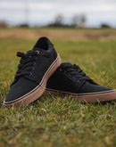 Fox Black Canvas Shoes, comfortable lightweight footwear ideal for the dry warmer months of the year. With a canvas upper, vulcanised gum sole and padded ankle collar and tongue.