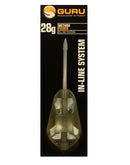The tear-drop shaped feeders from the Guru Inline Method range boast a number of ridges that hold a compact groundbait or pellet mix in place.