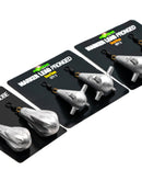These are the ultimate leads for feature finding and will give you more ‘feel’ than anything else on the market. The Marker Lead features four prongs to enhance the feeling that you get as your drag it across the bottom, and if it glides back towards you then you know that the area is very clean and hard. They are uncoated, which also helps increase feedback to the rod tip, and means that you can easily see scratches when they’ve been pulled across lumpier gravel, or even bits of clay stuck to them! The one situation where they aren’t really suitable is where it is very weedy, as the shape means that they will constantly get stuck and pick up lots of weed – although that does also mean that they can be using for clearing small areas of weed on the bottom, like a mini rake – and in this situation our Marker Lead Probe is the best option. The distance casting shape means that they will accurately fly a long way, and they come in 2oz, 3oz, and 4oz sizes to cover all situations. The Marker Leads are sold in packs of two – either 2oz/3oz or 3oz/4oz.
