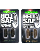 This ingenious system revolutionised fishing with helicopter rigs, as it meant that leads could consistently be discharged as soon as you hooked a fish, whenever the situation meant that this was essential. As well as dropping the lead when you are fishing in very weedy or snaggy situations, it is also popular with anyone using a chod rig, where ejecting the lead increases your chances of landing a fish, especially at long range where a heavy lead is being used. There is also the option though to fit a small plastic collar (supplied) which fixes the lead in place, for use in situations where dropping it isn’t necessary, but you still want the versatility that the Heli-Safe System offers. It can be used in conjunction with leaders – such as any ring swivel leader in our Dark Matter or Kable Leadcore ranges, which can be adapted to fit the Heli-Safe bead – or with a naked set-up with your main line straight through to it. Heli-Safe System works perfectly in conjunction with our Leadcore Chod Safety or Naked Chod Safety systems. Each pack contains two Heli-Safe beads, in a choice of green or brown, along with all the bits you need to make it work – including instructions.