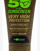 Korda factor 50+ high protection sunscreen uses an advanced dermatologically tested formula that provides water resistant protection against harmful UVA & UVB rays and is supplied to the NHS, MOD and RNLI to mention a few. The formula is unfragranced, fortified with vitamin E and comes in handy, tackle bag 50ml sized tubes.