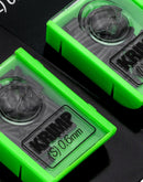 The Large 0.7mm Krimp is for really thick materials, such as 35lb Boom or very heavy mono. The newest addition to the range, the X-Small 0.5mm version, is perfect for using with 15lb & 20lb Boom, or any other hook link material which is suitable for crimping (must have very low, or no stretch) and has a diameter between 0.40mm and 0.50mm. They come supplied in a neat little box with a sliding lid, which helps prevent spillages, with 50 Krimps in each pack.
