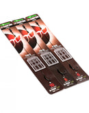 It has never been easier to use one of Korda boss Danny Fairbrass’ favourite rigs, as there is now a ready-tied DF Carp Rig, which is tied exactly how he would do it himself, using the same components. This is a highly effective rig, which can be used with bottom baits, wafters, or even pop-ups (with the addition of a counter balance weight), and the blowback style ring running on the shank, plus a piece of shrink tubing to give the hook an aggressive stance, mean that it has great hooking potential. It is tied using the Wide Gape pattern of hook to 15lb N-Trap Soft for size 6, 8 and 10 hooks, 20lb for size 4, and 30lb for size 2, with a size 8 swivel attached via a figure-of-eight loop knot at the other end. It is available in barbed or barbless, with a choice of a size 2, 4, 6, 8, or 10 hook. You get one rig per packet.