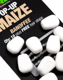Pop-Up Maize is slightly larger than the Corn which we also do in our Fake Food range, reflecting the size difference in the real thing and is therefore also more buoyant. This makes it suitable for use with larger hooks, or rigs that contain more metalware, as it still has enough buoyancy to pop everything up off the bottom, even when just using a single piece.