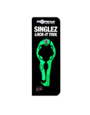 The tool has a unique internal profile and extended grip making it easy to apply pressure to Singlez collars. In addition, a hook at the end of the tool is designed for lifting bucket lids and small magnets keep the tool closed when not in use.
