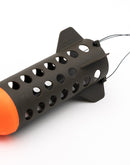 This traditional spod has been updated and tweaked to make it even better than the original. It can be cast a very long way, whilst losing the minimum amount of bait due to ‘spod spill’ whilst in flight. The holes and their positioning allow it to empty very quickly once it hits the water, and help it to be retrieved as effortlessly through the water as possible. The front flights, which it used to feature, have been scrapped and it now flies far straighter, even in a cross wind. It can be used with boilies, pellets or particles – although a stodgy mix will help reduce spill in flight. It also features a bright orange nose cone to make it easy to spot and is quickly attached to your spod rod set-up via our patented Spod Tail.