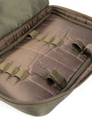 Nash Buzz Bar Pouch, Proven protective design with Velcro securing loops to retain front and rear bars complete with alarms and rear rests, plus room for a receiver. Padded central divider, plus elastic loops to retain up to four 12 inch (30cm) banksticks and a zipped mesh pocket for indicators. Dimensions: 20cm H x 33cm W x 9cm D.