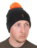 The Fox Collection Bobble Hat Black/Orange, an all black design with contrasting orange bobbles and fox detailing.