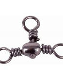 3 Way Swivels, Based around the barrel swivel, the three-way swivel features a third central eye that comes out of the main body. The three-way swivel is useful for attaching a hook length to the middle eye with the mainline and lead coming off the first and second eye, a great choice when live baiting. They are also useful when lure fishing, with the middle eye ideal for attaching a lead with the hook length to the lure coming off the second eye. A versatile swivel that can be used for all manner of fishing setups.