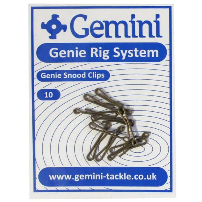 The Gemini Genie Snood Clips are designed to be used on the snood on your rig to make it removable and replaceable.This makes snoods on a rig detachable. This means that instead of using a different rig when only a minor adjust...