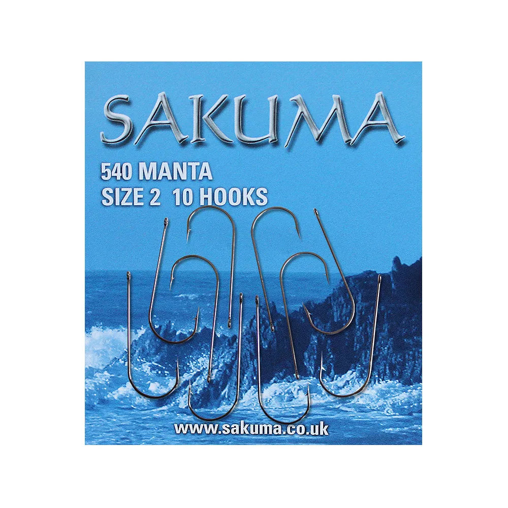 Sakuma 540 Manta Hooks, Super sharp forged wire finished in anti-corrosive black nickel. Special wide gape that will give unrivalled presentation to bulky baits like crab and squid. A top choice for specimen hunting in the larg...