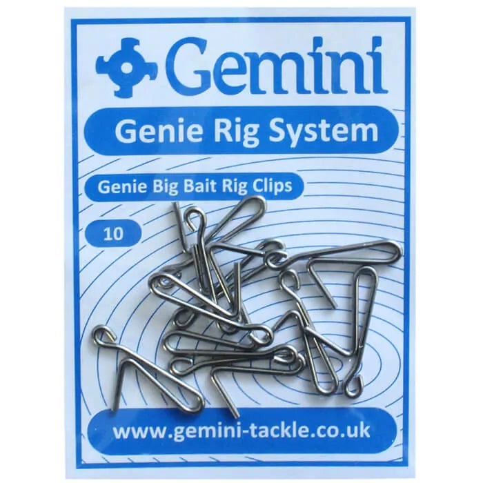 The Gemini Genie Big Bait Rig Clips incorporate an extended bait clip and are ideal for those bigger hook baits to stay clipped down until the rig hits the water.This rig clip is durable and strong and provides a quick and easy...