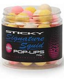Sticky Baits Signature Squid Pop-Ups, Rather than simply being vehicles for a synthetic flavour, our Signature Squid pop-ups are packed with the most awesome natural attractors that we could source. Crucially, they contain a rather special Norwegian squid hydrolysate thats exclusive to us. The potent attractor package also includes that all-time classic Squid and Octopus flavour, in harmony with other soluble fish proteins, powdered fish palatants and green-lipped mussel powder (GLM); a combination designed to trigger a strong feeding response in carp. Now, because we know that yellow hook baits might work best one day, on one lake, but pinks, or whites, rule the roost the next week, or on a different venue, the Signature Squid tubs contain yellow, pink and white versions of the same hook bait. This gives you ultimate freedom to experiment, safe in the knowledge that youve got all that attraction backing you up. Weve chosen to produce the Signature Squids in slightly more subtle colours than some attractor baits that youll see. The result is eye-catching baits that have a slightly washed-out look to them, rather than super-bright fluoros. Signature Squids can be used as potent single hook baits, or over any free offerings, either on their own or as part of a snowman bait. Weve been able to take advantage of new sources of ingredients and advances in research to significantly improve an absolute classic... in fact, were confident that this is the now ultimate squid hook bait! Available in 12mm, 14mm and 16mm.